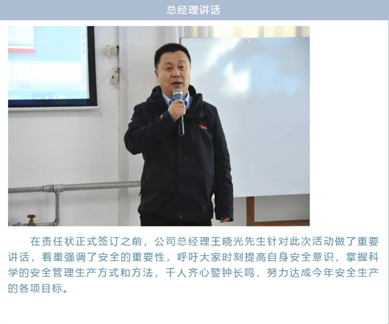 安全责任状签订活动主要分四步进行:公布了2019年度安全生产总目标;发布并解释了《安全事故考核规定》和《安全检查管理规定》;总结了2019年EHS存在的风险并给出对策;签订责任状。